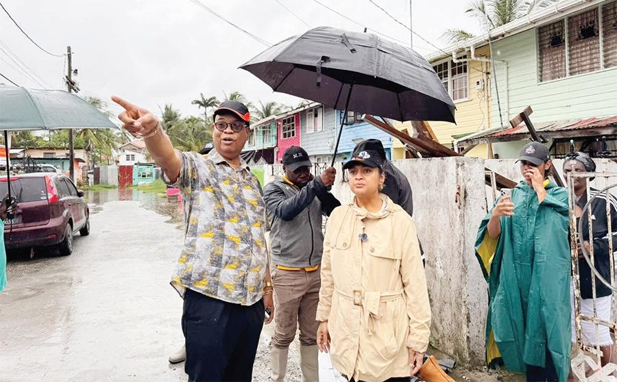 Minister of Local Government and Regional Development, Priya Manickchand, and Minister of Public Works, Bishop Juan Edghill, engage residents during on-the-ground flood assessments in South Ruimveldt on Saturday