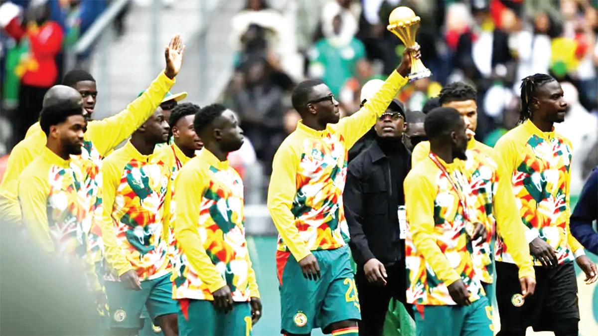 Before the match against Peru, captain Kalidou Koulibaly and his team-mates entered the pitch with the Afcon trophy for a lap of honour, before Koulibaly and goalkeeper Edouard Mendy went up to the stadium's presidential box to place the