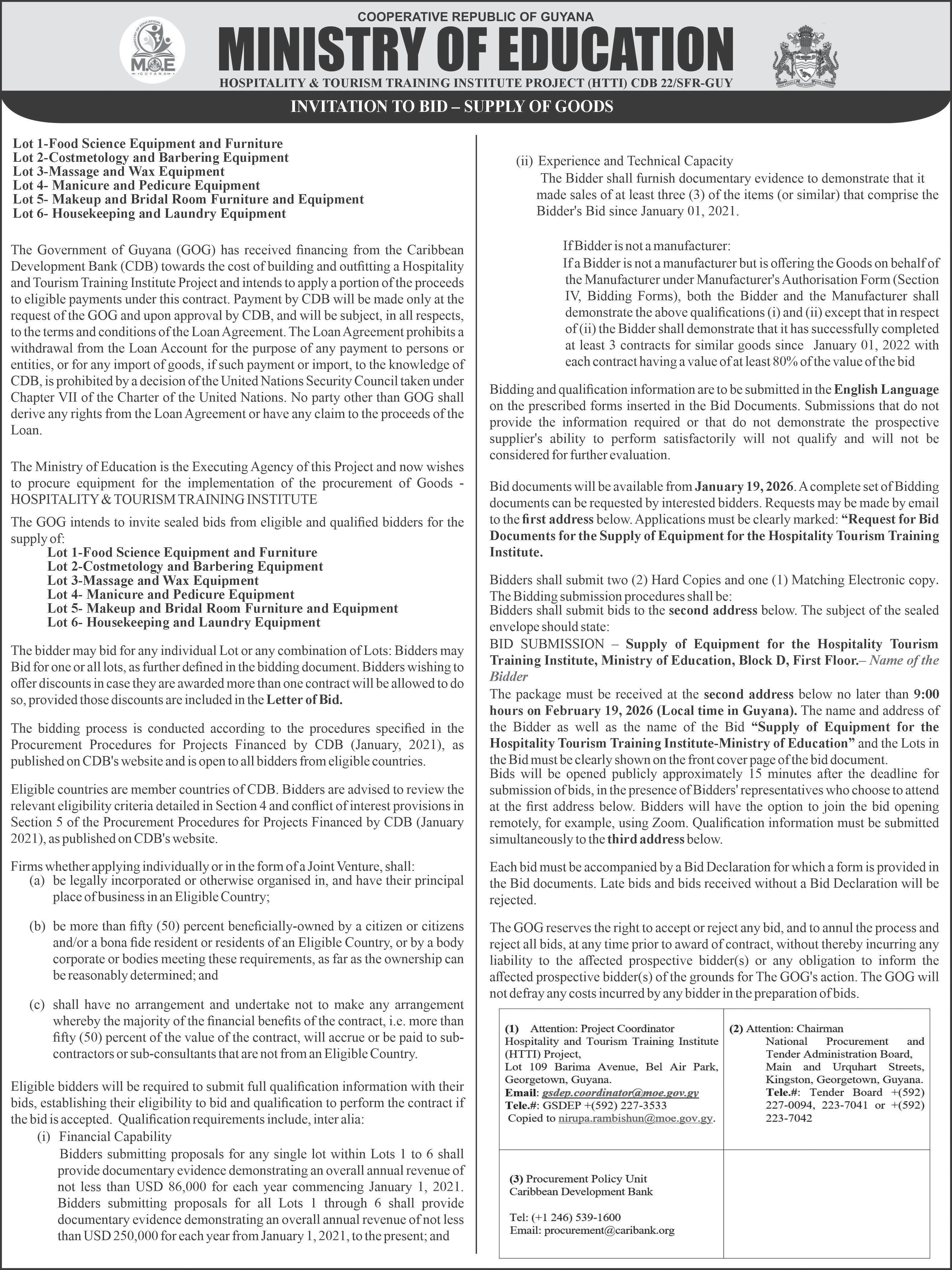 are University of Guyana Turkeyen campus, Tain campus, Cyril Potter College of Education, Government Technical Institute, Linden Technical Institute, Port Mourant Technical Institute, New Amsterdam Technical Institute, Mahaicony Technical Institute, Essequibo Technical Institute, Upper Corentyne Technical Training Centre, Texila American University, Guyana School of Agriculture, Leonora Technical and Vocational Training Centre and Guyana Industrial Training Centre. The tournament will officially kick off on February 8th and will conclude on March 8th at the Ministry of Education Ground.