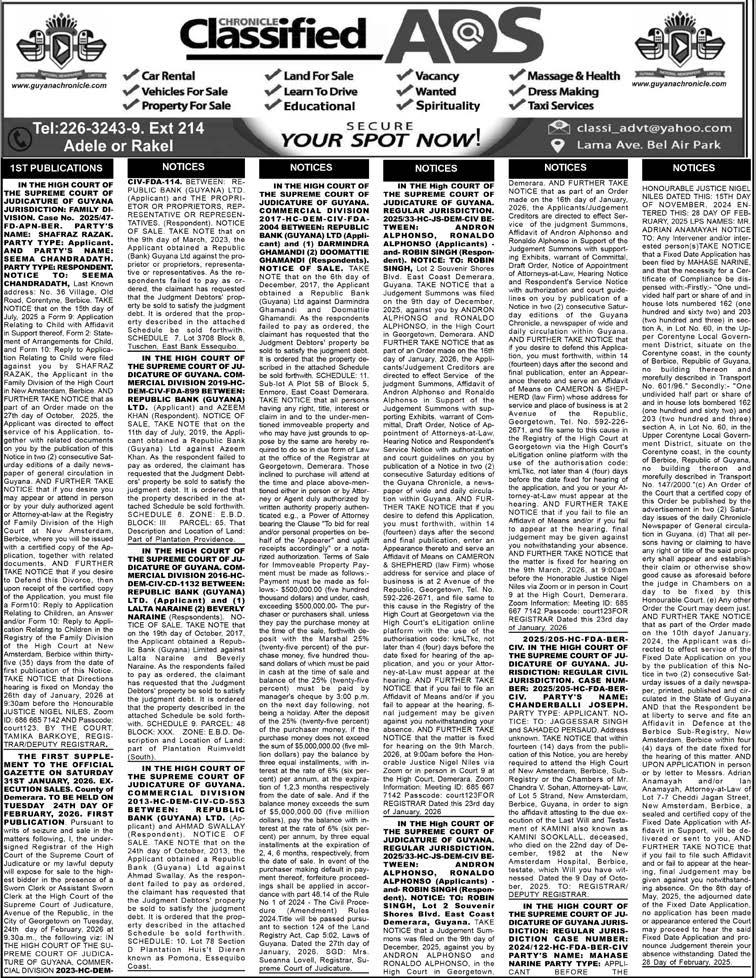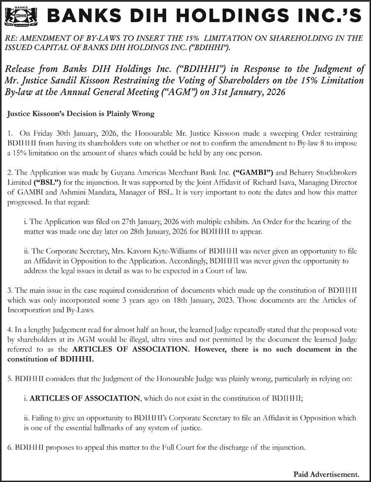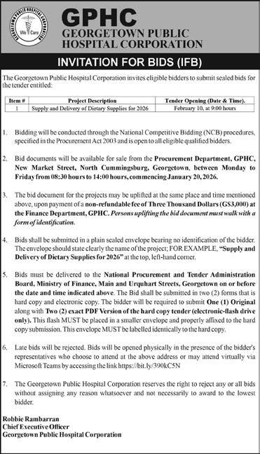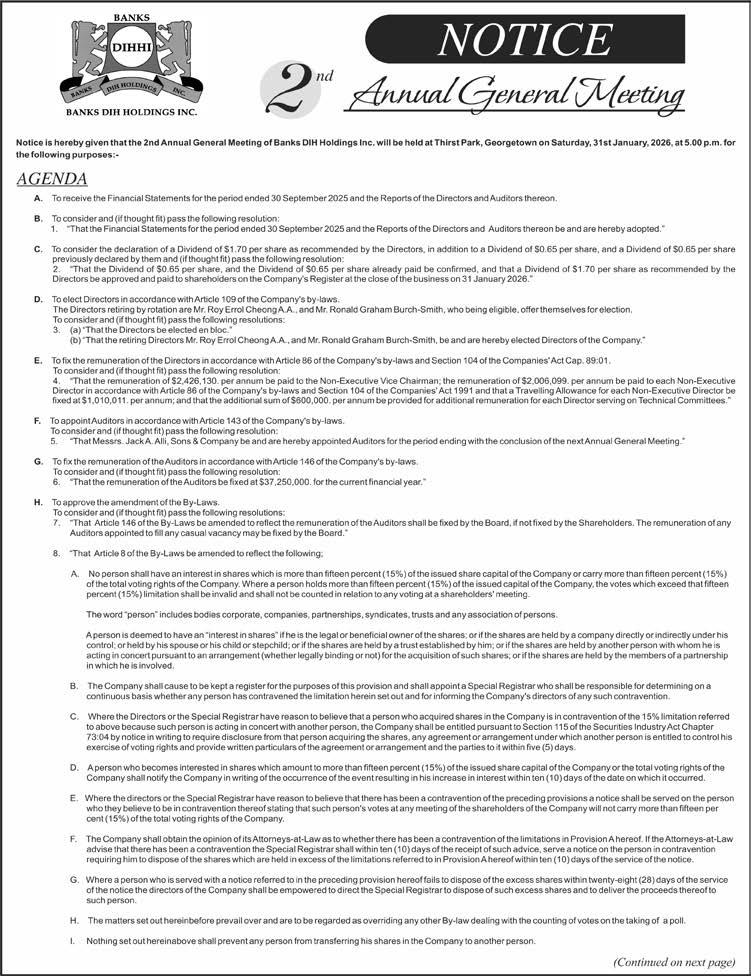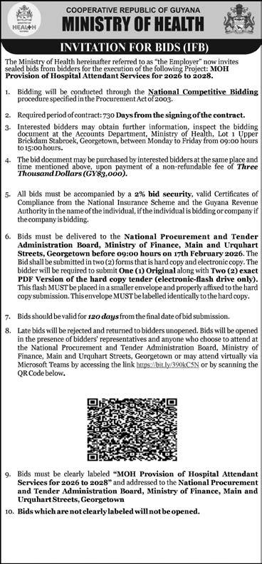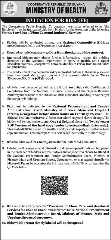 * Continuation of the $100,000 National Cash Grant for every Guyanese citizen aged 18 and over in 2026, expected to transfer over $60 billion to more than 600,000 adults