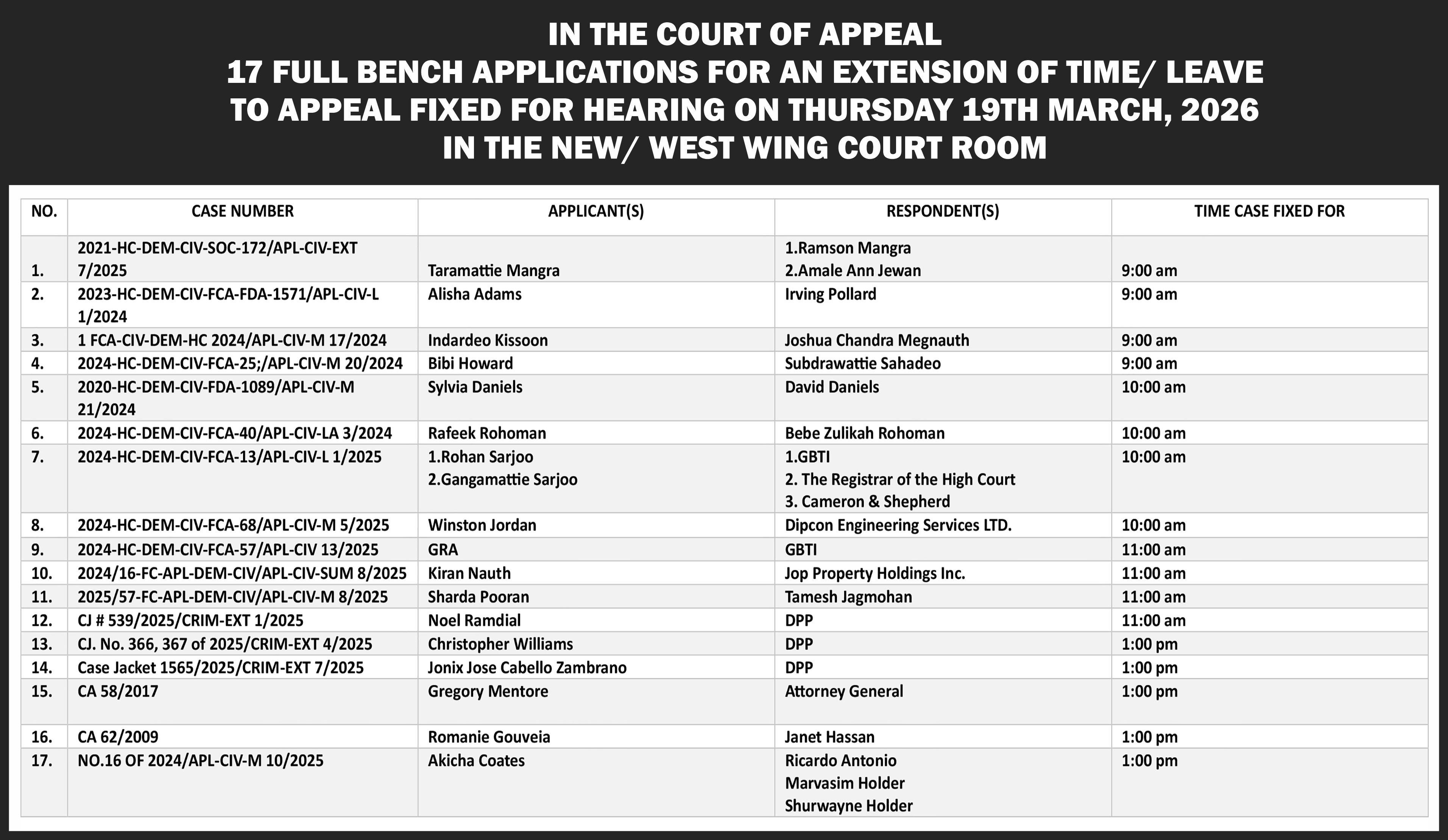 Munesh Outar was not-out on 12 and Junior Dindyal on 8 were together when victory was achieved.