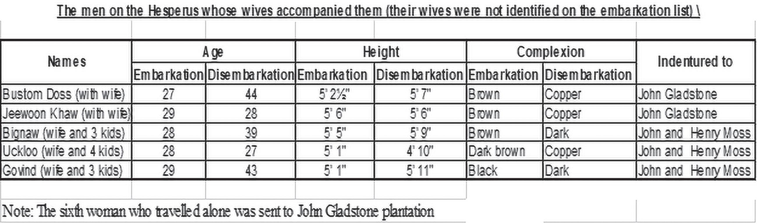 From the above, one can observe the vast discrepancies of the biodata of the immigrants on the Hesperus when comparing the information on the embarkation list against that on the disembarkation list