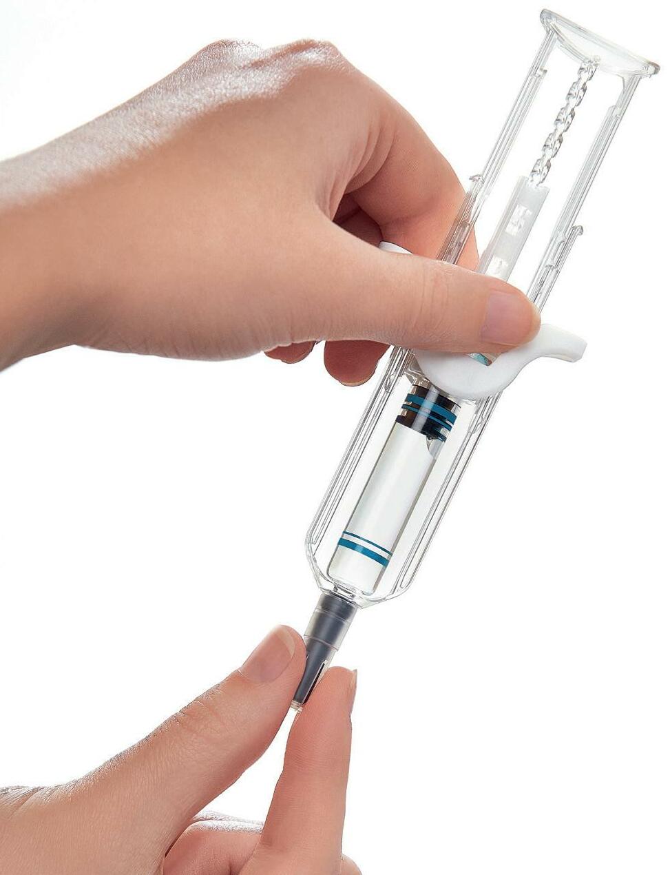 Figure 1: The UniSafe® platform is a spring-free, passive safety device for 1 mL and 2.25 mL prefilled syringes.