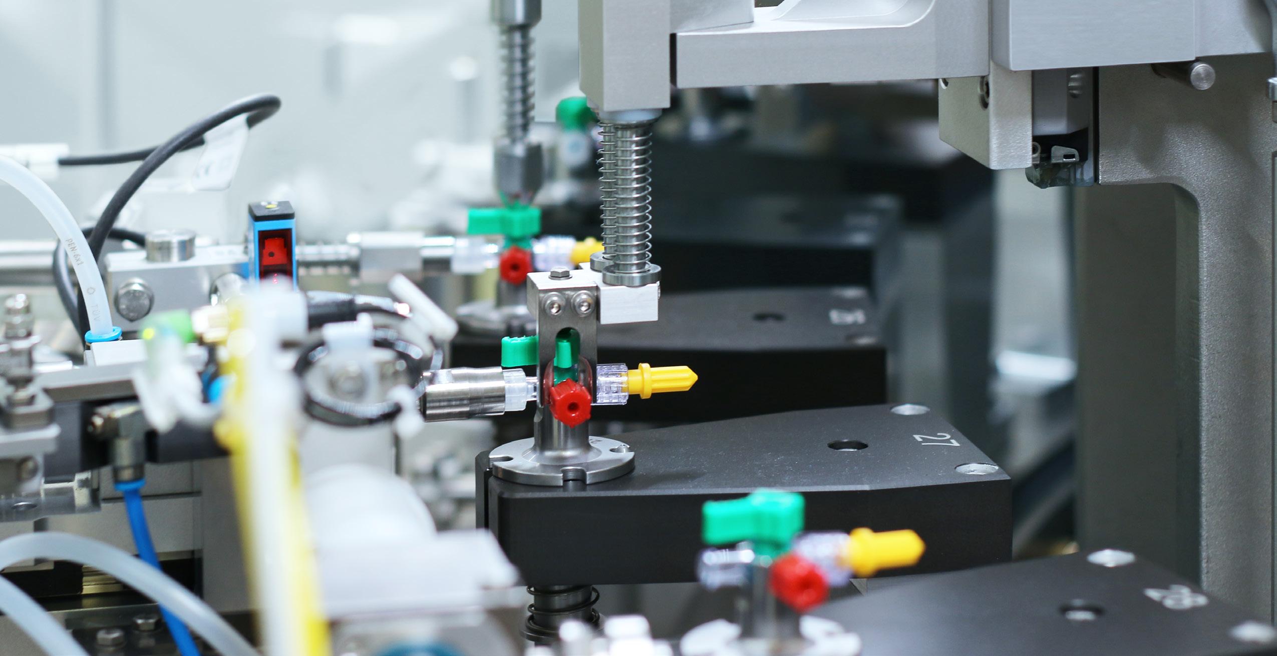 teamtechnik systems can be easily adapted to new product variants and enable the continuous observation of settings between all components without the time-consuming adaptation of the mechanical parts or software. Flexible processes are used that can automatically decide which parameter sets certain products are manufactured and tested with. By deploying technology-driven and digitally integrated innovation strategies, the entire production line can be controlled and observed via the industrial computer HMI. The combination of assembly and testing tasks in the medical-technical field, as well as complex and precise process technologies such as micro dosing, force-displacement and torque testing, are among teamtechnik’s core competencies.