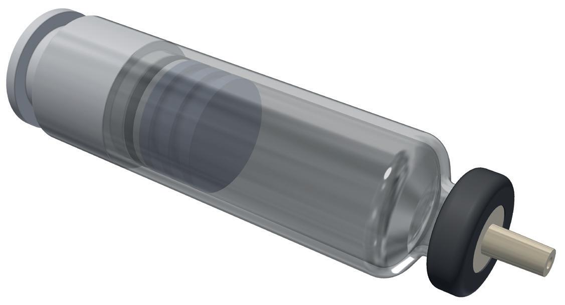 autoinjector consisting of ten or more components. The core function does not change between variants; only the external appearance and size are customised. The varying components are uniformly standardised in their basic concept and mainly differ in their colour and functional position. To generate product variants, the dimensions of the component variants are configured in relation to the individual PFS capacities. The PFS product range includes three basic diameters and several length variants, each consisting of a glass barrel and a needle. The glass barrel, needle diameter, needle tip and needle wall thickness form different variants of the PFS product platform.