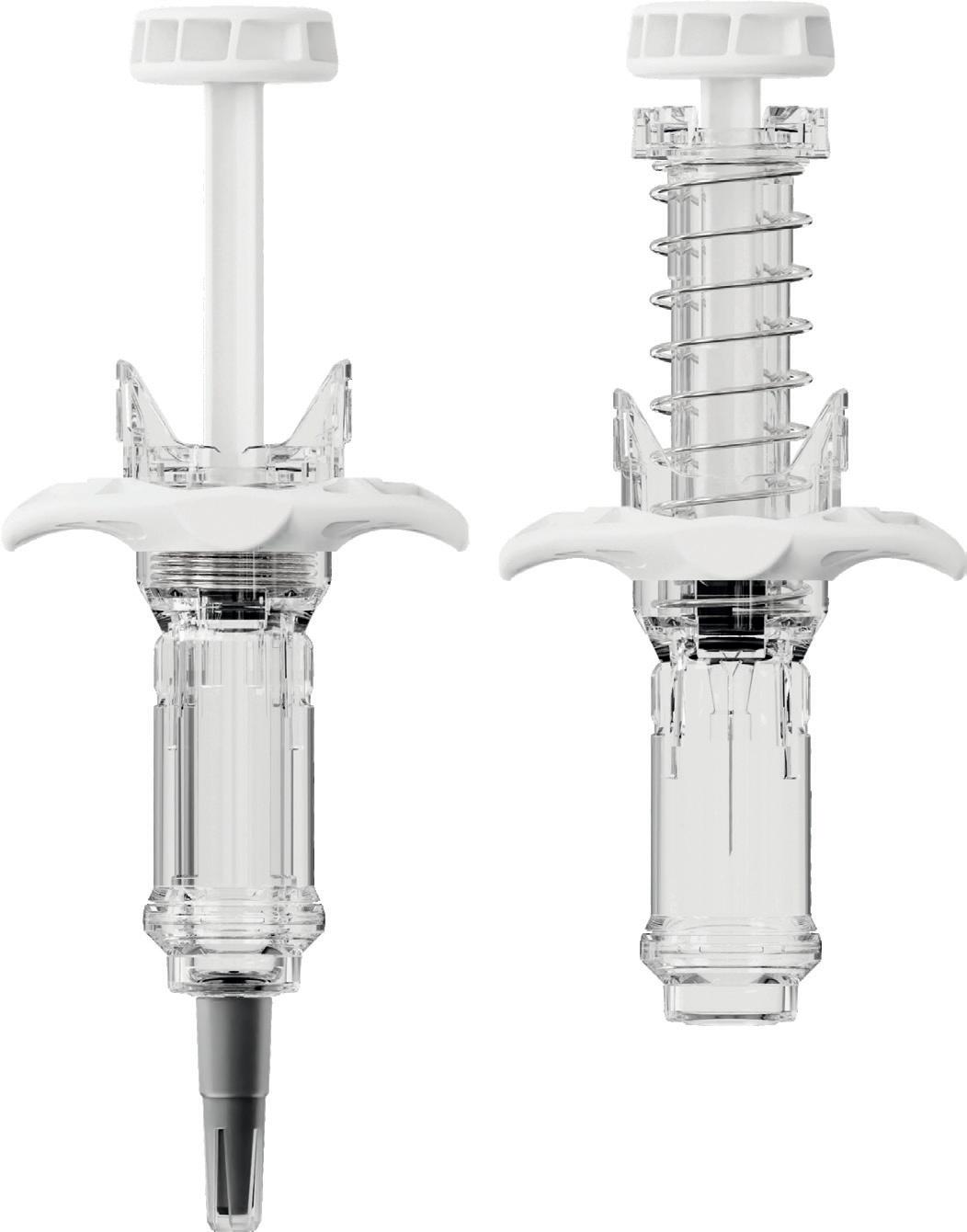 The company’s most recent innovation is the two-step disposable autoinjector, Aidaptus® (Figure 2), which can be used for both 1 mL and 2.25 mL syringes in the same base device.