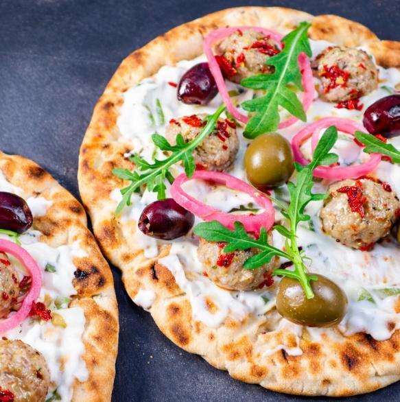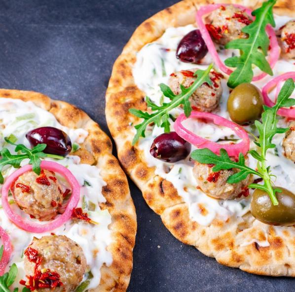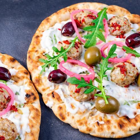 35. GRÆSK FLATBRØD MED KØDBOLLER Kr. 50,-