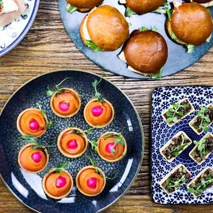 SKAGEN SALAT A LA MUMS – SLIDER PULLED PORK – WRAPS, A LA CÆSAR SALAT - HJEMMELAVET KYLLINGESALAT - RØGET OKSEINDERLÅR A LA BRESAOLA, PASSIONS KAGE