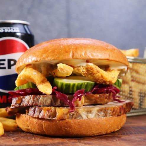 Vores Okse Brisket er tilberedes ved lav temperatur over lang tid, krydret og let røget med vores egen rub, hjemmelavet Coleslaw salat, barbecuesauce, mayo og salat Kr. 85,-