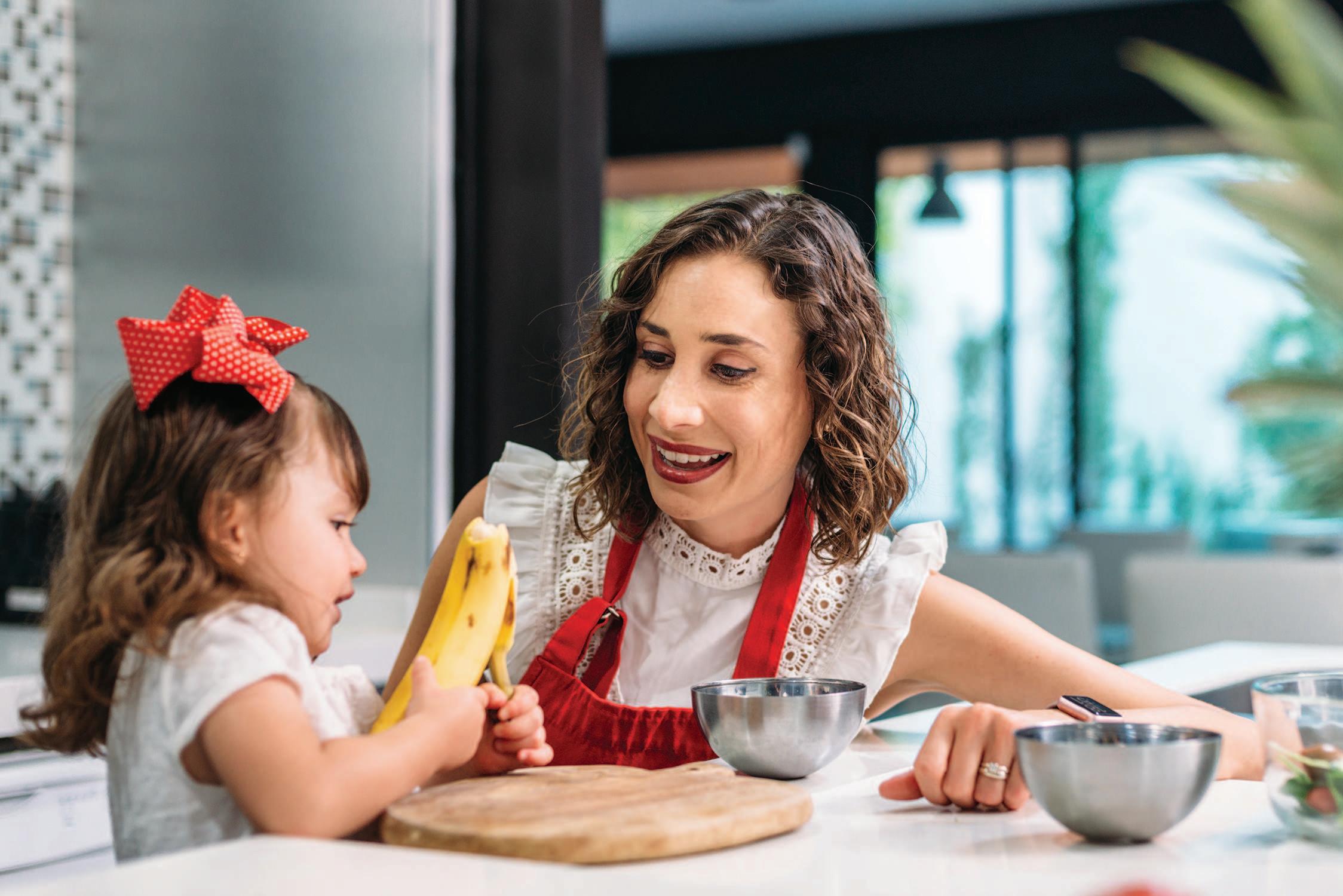 PURPOSEFUL PLAYTIME: Many households have a play kitchen or some kind of play food. Use this as an opportunity to act out how to create a healthy kitchen with activities like making salad, setting the table, peeling bananas and washing dishes. This can help young children become more independent, learn what to expect and grow into little helpers at family mealtime.