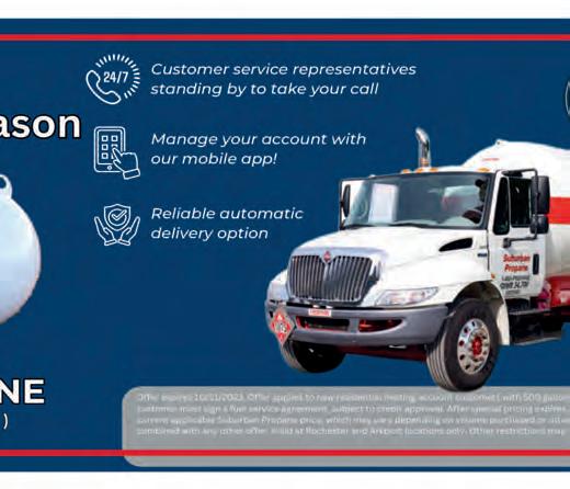 GENESEE VALLEY PENNY SAVER ● GVPENNYSAVER.COM 1-866-812-8111 Page8 BATAVIA EDITION ● FRIDAY,SEPTEMBER 1,2023 Offer expires 10/31/23. Offer applies to new residential heating account customers with 500 gallon tanks. Propane customer must sign a fuel service agreement, subject to credit approval. After special pricing expires, customer will pay then current applicable Suburban Propane price, which may vary depending on volume purchased or other factors. Cannot be combined with any other offer. Valid at Rochester and Arkport locations only. Other restrictions may apply. Call for details. HOME HEATING & AIR CONDITIONING NEW WAVE SEAMLESS GUTTERS INC. Commercial/Residential Installation & Maintenance 5” and 6” Gutters • All Types • All Colors Trim and Fascia • Service/Cleanings 585-659-2892 Fully Insured • Free Estimates 1-Year Warranty