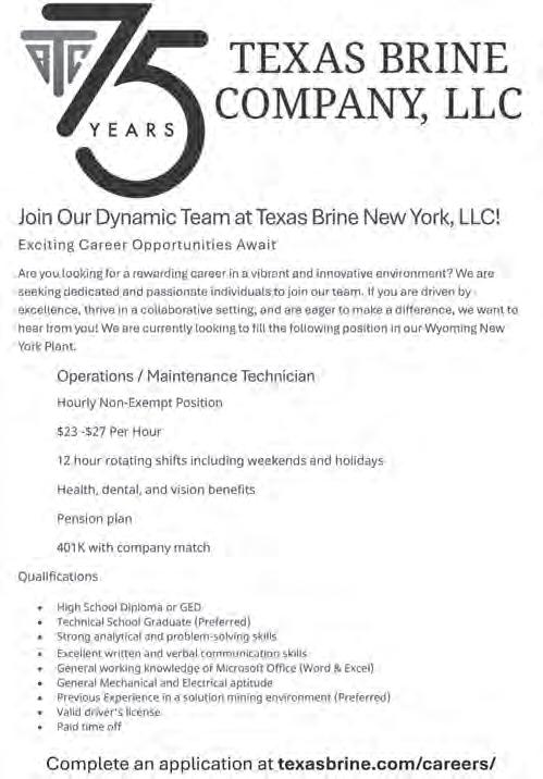 Competitive Wages and Benefit Package including: 401k • Pension • Health Insurance • Annual Bonuses For complete listings & job descriptions visit: www.brunnerbrakes-intl.com 3959 Bates Rd., Medina, NY 585-798-9316