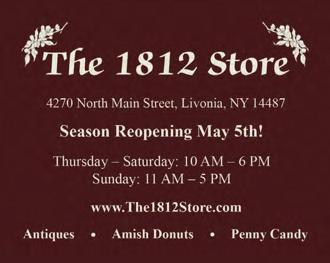 8708 Main St., Honeoye 585-229-5020 • Hrs: M. 12-6pm, T. 2-8pm, W. 10am-2pm, Th. 2-8pm, Sat. 9am-1pm, Closed Fri. & Sun.