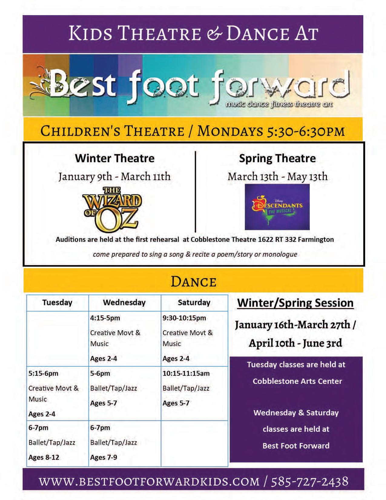 TistheSeason ● GVPENNYSAVER.COM 1-866-812-8111 Page5 CANANDAIGUA-NAPLES EDITION ● FRIDAY,NOVEMBER 18,2022 Wednesday & Saturday classes are held at Best Foot Forward WWW.BESTFOOTFORWARDKIDS.COM / 585-727-2438 6-7pm Ballet/Tap/Jazz Ages 8-12 6-7pm Ballet/Tap/Jazz Ages7-9 TuesdayWednesday Saturday Kids Theatre and Dance at