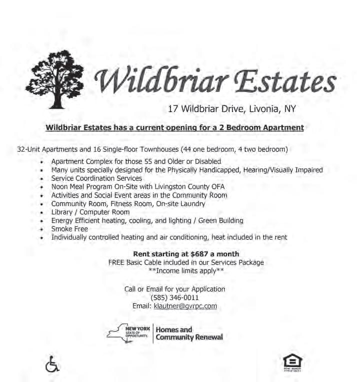 All real estate advertised in the Genesee Valley Penny Saver is subject to the Federal Fair Housing Act, which makes it illegal to advertise any preference, limitation, or discrimination based on race, color, religion, sex, age, marital status, handicap, familial status, or national origin, or intention to make any such preference, limitation or discrimination. We will not knowingly accept any advertising for real estate which is in violation of the law. All persons are hereby informed that all dwellings advertised are available on an equal opportunity basis.