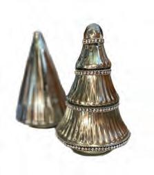 A mix of faux and metallic pine trees give your table the height it needs. Be sure to place them strategically so your guests can easily see one another.