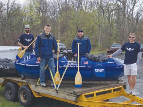 along an almost three-mile course, some in canoes, others in barrel-made ra s, through the Canandaigua Outlet to the Manchester Gateway Trail. While paddlers braved not-so-calm waters, there was crew on hand to save anyone who capsized.