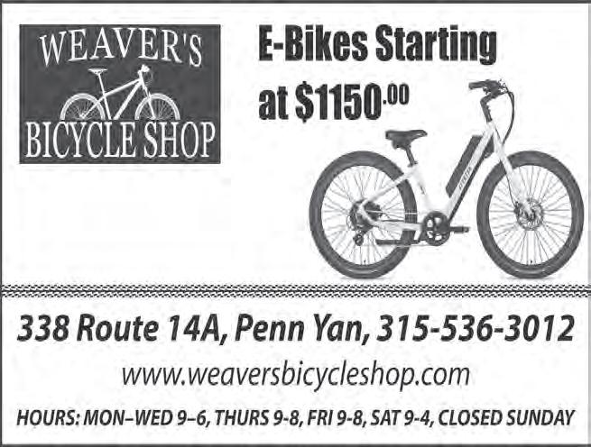 DITION ● FRIDAY,SEPTEMBER 30,2022 A UTO S ECTION 338 Route 14A, Penn Yan 315-536-3012 www.weaversbicycleshop.com E-BIKES Wide variety of bike racks and other accessories also available. Hundreds of Bikes in Inventory Including HOURS: MON.-FRI. 9-6, SAT. 9-4, CLOSED SUNDAY DAVE’S DIGGS COUNTRY STORES *INDOOR & OUTDOOR AMISH FURNITURE *SWINGSETS *HANDCRAFTED LOCAL GOODS *BOBCAT EXCAVATION SERVICE & SITE WORK *SHEDS AND HORSE BARNS 5650CountyRoad41,Farmington website:DavesDiggs.com 585-261-0012cell Email:ddiggs@rochester.rr.com Tues.-Sat.10am-5pm BCB&BBBaccredited CLAR’S COLLISION 4778 Honeoye Business Park, Honeoye • 585-229-2008 We specialize in collision repair, so you can count on us for quality work. Frame straightening, custom color matching, dent and ding removal, insurance specialists Free Written Estimates Corner Route 21 and Water Street, Shortsville Phone (585) 289-6100 Mon. - Fri. 8am to 5pm; Sat. 8am to 2pm Fall Filter Sale - Oct. 10th-22nd ALL NAPA Gold Filters On Sale Up to 45% OFF Get Your Order In Now! Last Chance For This Year! CAN BREAST CANCER BE PREVENTED? Breastfeed, if possible. MOMENTS IN TIME The History Channel * On Oct. 2, 1948, the first American road race since World War II takes place in Watkins Glen in New York. The New York Central railroad agreed to suspend train service so the drivers could safely cross the tracks. Mon.-Fri. 8am-5pm; Sat. 8am-1pm • mtmautoinc@gmail.com AUTO ACCESSORIES AUTOMOTIVE ACCESSORIES 681 Phillips Rd. • Victor (across from Pinnacle Athletic Campus.) • Custom Wheels • Heated Seats • Remote Starters • Full Service & Repair • & More