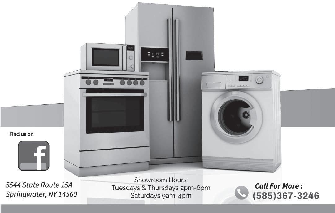 FINALLY!! Good Refurbished Appliances.CallJoeApplianceServiceshaswhatyouwant.Noelectronics,justgood”ole”reliableWashers, Dryers,StovesandRefrigerators.Stop byandcheckthemout!Hours: Monday-Friday,9-6pm.Saturday, 9-5pm.10MainStreet,Bloomfield, NY585-394-1880