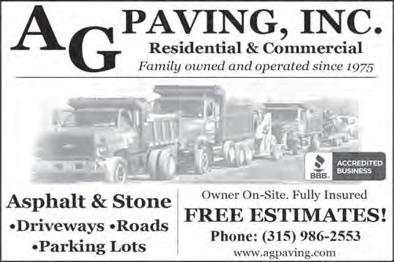 GENESEE VALLEY PENNY SAVER ● GVPENNYSAVER.COM 1-866-812-8111 EASTWAY EDITION ● FRIDAY,AUGUST 25,2023 Call Free estimates and unbeatable prices! RESIDENTIAL & COMMERCIAL In Business since 1956 LOCALLY OWNED Not a liated with any other companies. Hello Western New Y k… Have you been considering a new asphalt driveway but the quote you received is ridiculous? Give us a call. We provide quality service at affordable prices for your residential or commercial property. Discounts for Seniors! 585-204-3144 Mobile 833-728-3481 Office Big Enough To Serve You, Small Enough To Care! We always deliver over 50 years of expertise! Tired of expensive quotes on your asphalt driveway? • Excavation and demolition ulvert pipe installation • Ditch and drain work $500 Off 1,000 sq. ft. or less 10% OFF 3,000 sq. ft. or bigger One offer per customer and cannot be combined with any other coupon. Expires 9-15-23 15% Off 1,500 - 2,500 sq. ft. One offer per customer and cannot be combined with any other coupon. Expires 9-15-23 One offer per customer and cannot be combined with any other coupon. Expires 9-15-23 Consistently delivering quality work to satisfied homeowners… On the le a driveway which we completed over 15 years ago. the same homeowner was pleased to use us to apply the top coat to last another decade. Satisfaction Spanning Decades! On the right special thanks to all of our past customers