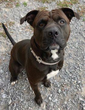Remi is a 2yr old Bully mix who is 60+ lbs. He is young and strong but loves walks and does quite well. He loves treats and knows how to sit and shake paw.