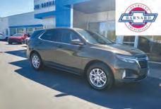 Chevrolet ‘20 Equinox LT AWD #4951, 55k mi, remote start, Android Auto Sale Price $17,955 ’22 Trailblazer ACTIV #5004,16k mi, FWD, sun/moonroof, remote start Sale Price $21,916 ’20 Equinox Premier #4979, 40k mi, AWD, leather seats, remote start Sale Price $21,444 ’22 Colorado Z71 Crew Cab #5039, 27k mi, 4WD, Nav, leather trim seats Sale Price $33,927 ‘22 Equinox LT FWD #5048, 11k mi, rear cam, Bluetooth, remote start Sale Price $22,911 ‘22 Equinox LT AWD #5026, 36k mi, rear cam, keyless entry Sale Price $21,936 ’22 Blazer RS #5046, 41k mi, AWD, leather, navigation Sale Price $31,941 ‘19 Silverado 2500HD LT 4WD #24T262A, 83k mi, wireless phone charging, crew cab Sale Price $35,883 ‘22 Equinox LT AWD #5035, 40k mi, remote start, lane/park assist Sale Price $20,940 ‘21 Colorado WT 4WD #4917A, 55k mi, rear cam, crew cab Sale Price $24,955 ‘23 Equinox LT AWD #5032, 6k mi, remote start, heated seats Sale Price $24,907 ’21 Trailblazer RS #5022, 30k mi, AWD, red accent, interior trim Sale Price $22,930