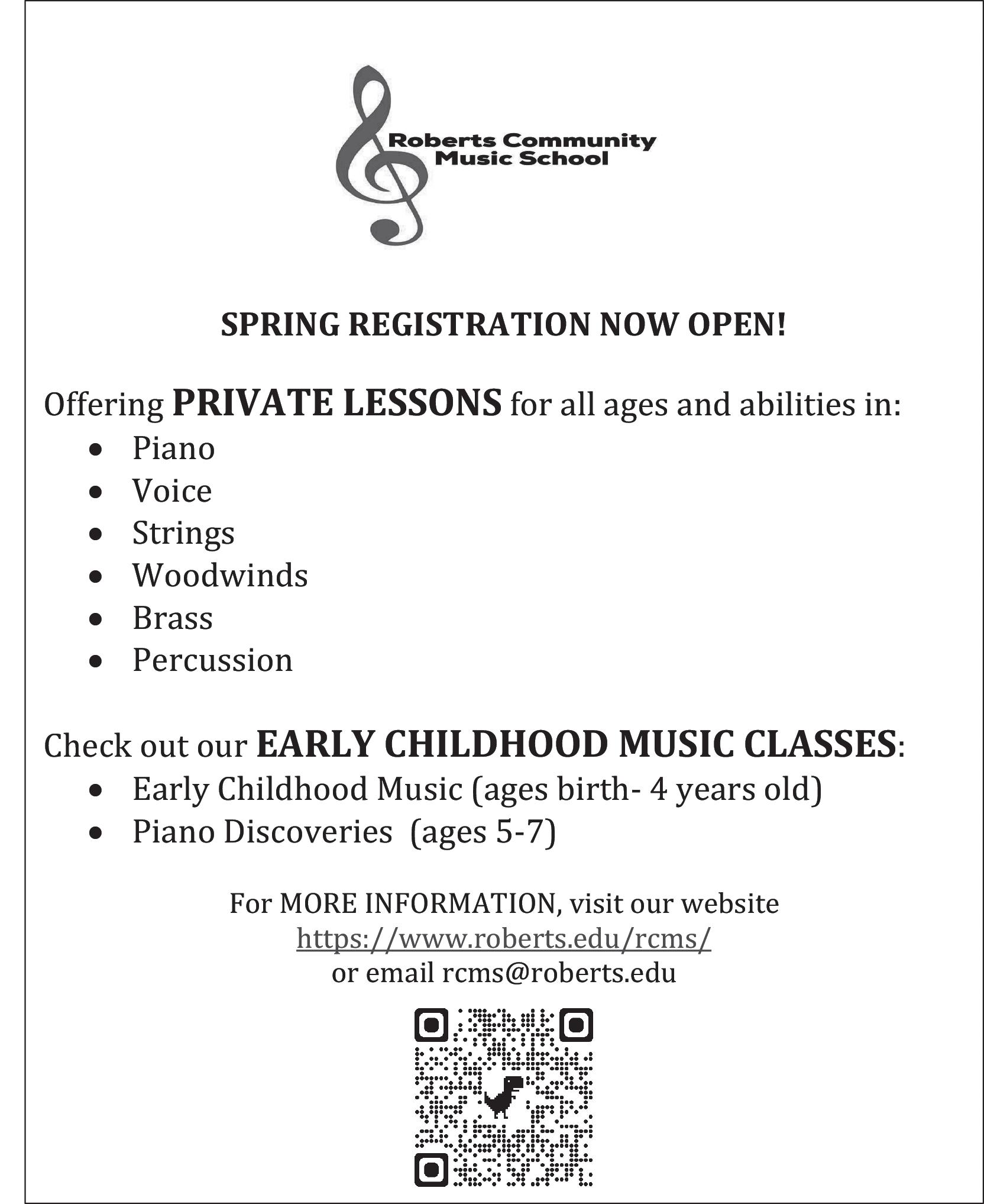 For MORE INFORMATION visit our website: https://www.roberts.edu/rcms/ or email rcms@roberts.edu
