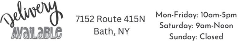 Gifted Goods II 3312 South Main Street Horseheads, NY 14845 Open Mon.-Fri. 10AM-6PM 607.368.8517