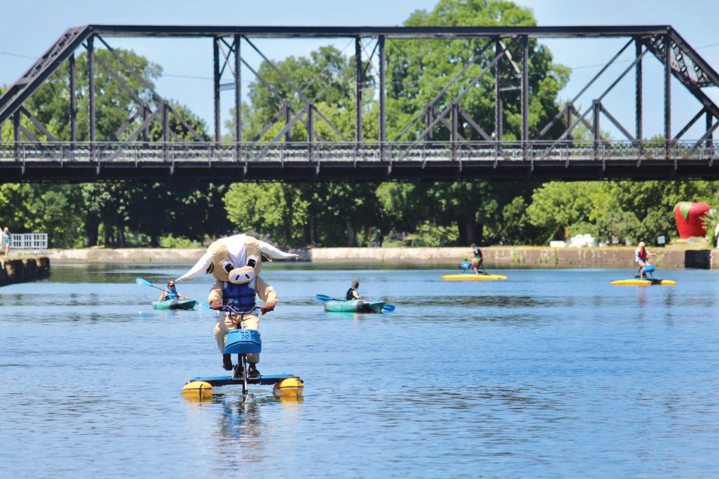 Once the ox was chosen, a committee member suggested taking the idea one step further: turning it into a character. Tom Rivers, editor of the Orleans Hub and a Bicentennial Committee member, pushed for using the ox as a mascot to tell the county’s story in a fresh, engaging way. Local seamstress, Robyn Watts, brought the vision to life and created Orly the Ox. Little did anyone know, a star was born. Orly made his debut in late 2024 to launch the bicentennial. He first appeared in Christmas parades in Medina and Albion, traveling alongside the Bicentennial Committee’s parade float, an ox sculpture painted by local artist Stacey Kirby. e sculpture was part of the county’s “Oxen of Orleans” public art project, which encouraged organizations to purchase and paint their own oxen.