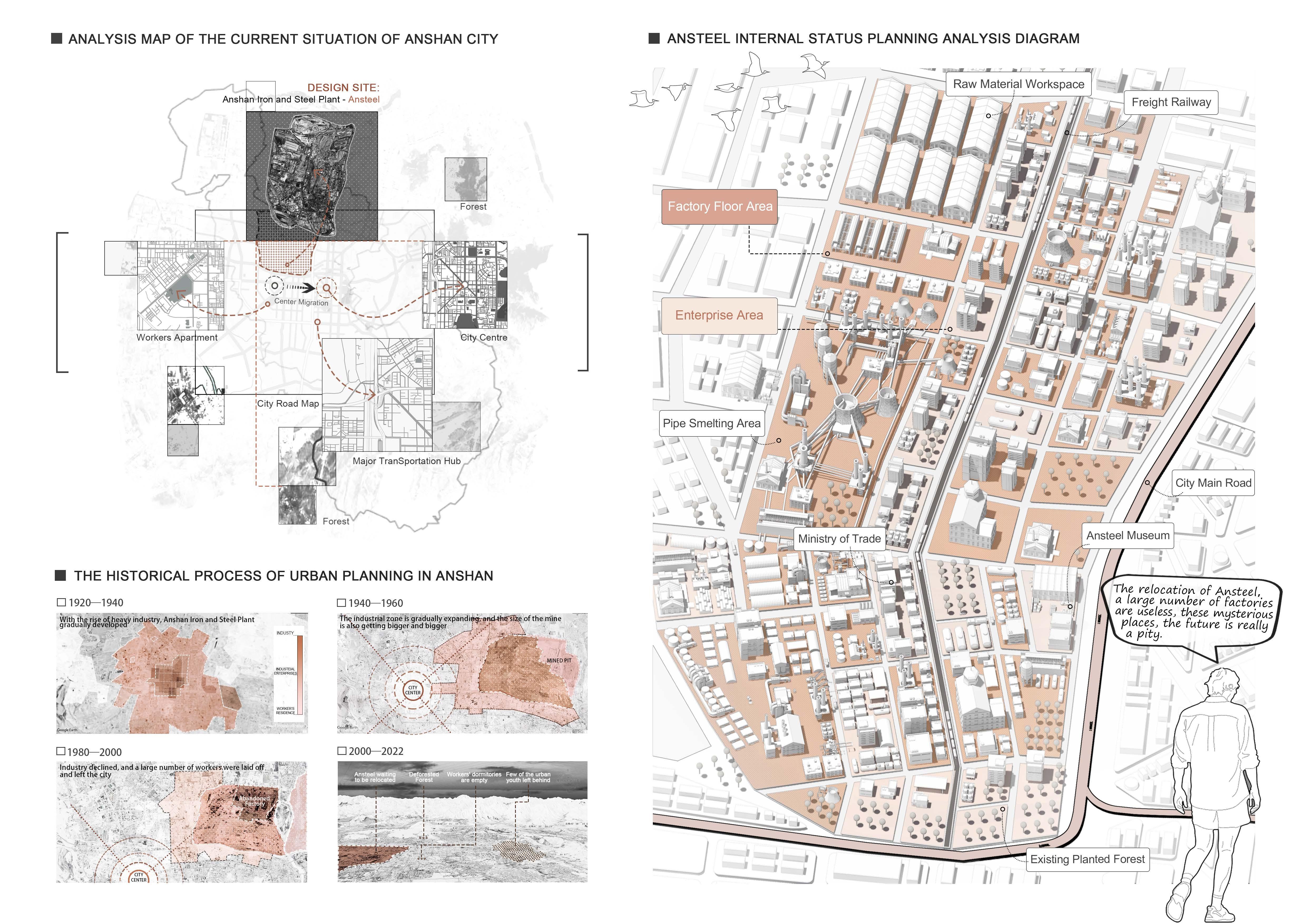 Through this portfolio I would like to present my understanding of the relationship between 'human-architecture-city' and my critical thinking on urban transformation. In it, I have chosen the urban (architectural) problems I encounter as a starting point for four design projects, all of which show the different characteristics of the new architecture and city in my mind. I like to analyse both sides of the coin with a critical eye, so for architecture and urban design I like to investigate the inevitable but easily overlooked problems brought about by urban transformation, and the many possibilities that architecture can play in this process, starting from the relationship between people-architecture-city and working out the most appropriate solutions.