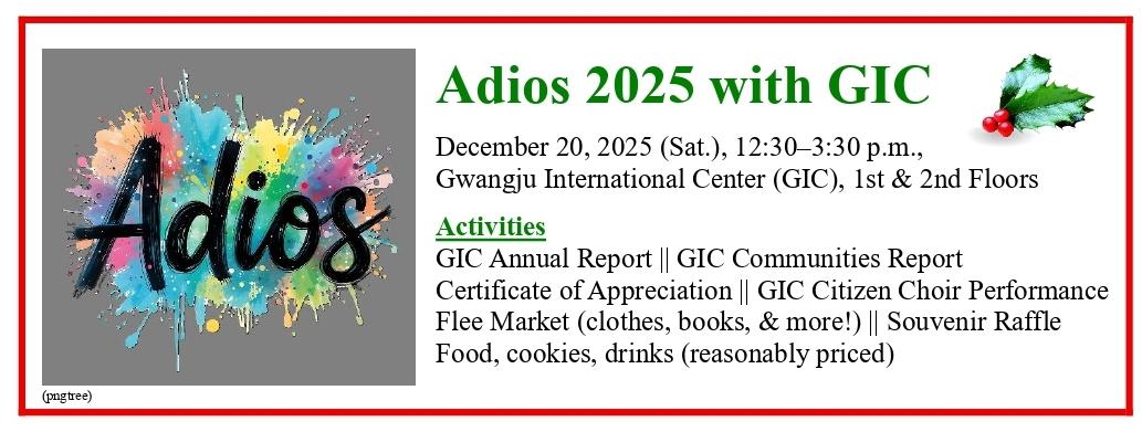 May the joy of the holiday season and the aspirations of the new year shine upon the Gwangju News family, the people of Gwangju and Korea, and communities everywhere.