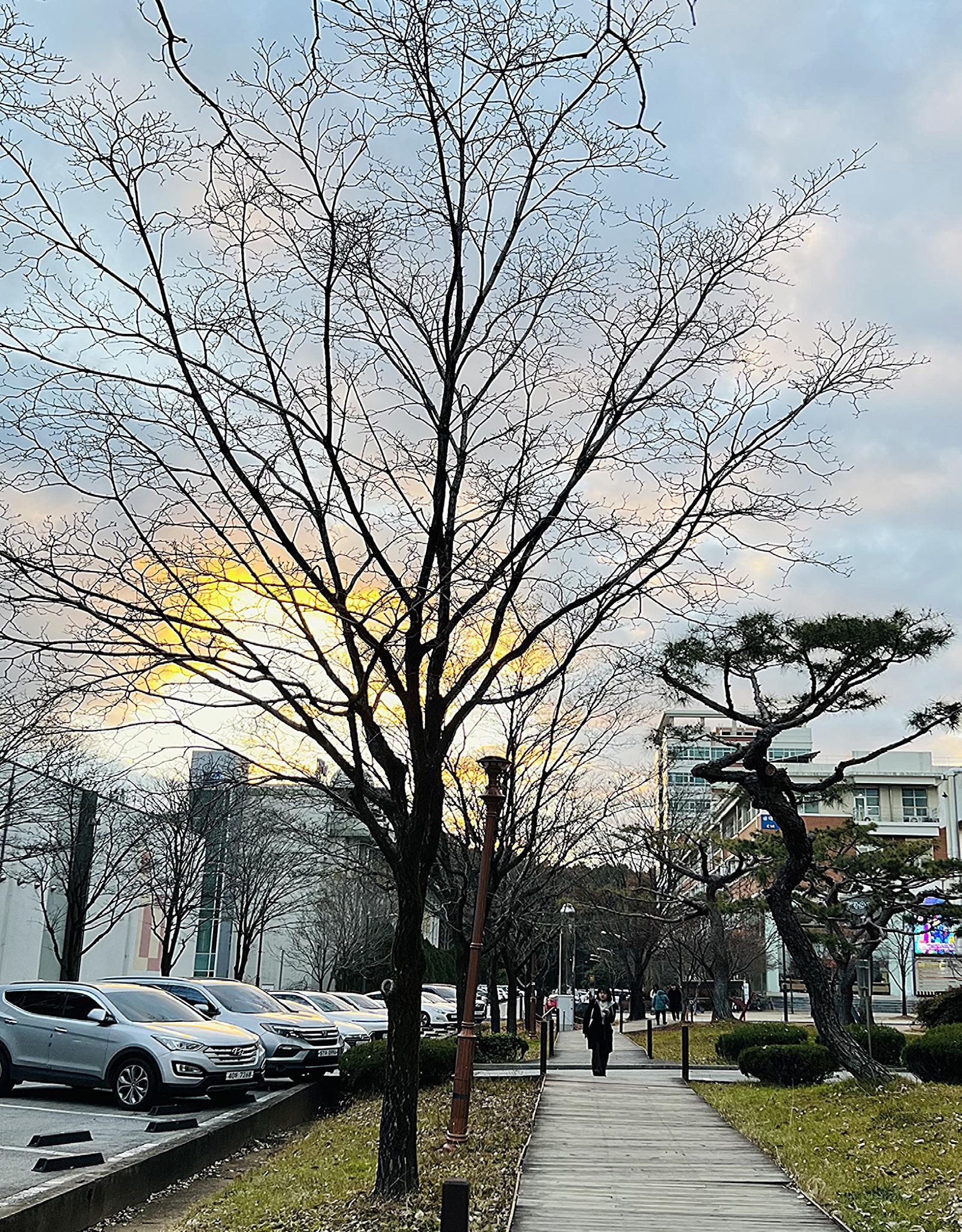 The photograph was taken at Chonnam National University’s Yongbong Campus in Gwangju during the early winter season.