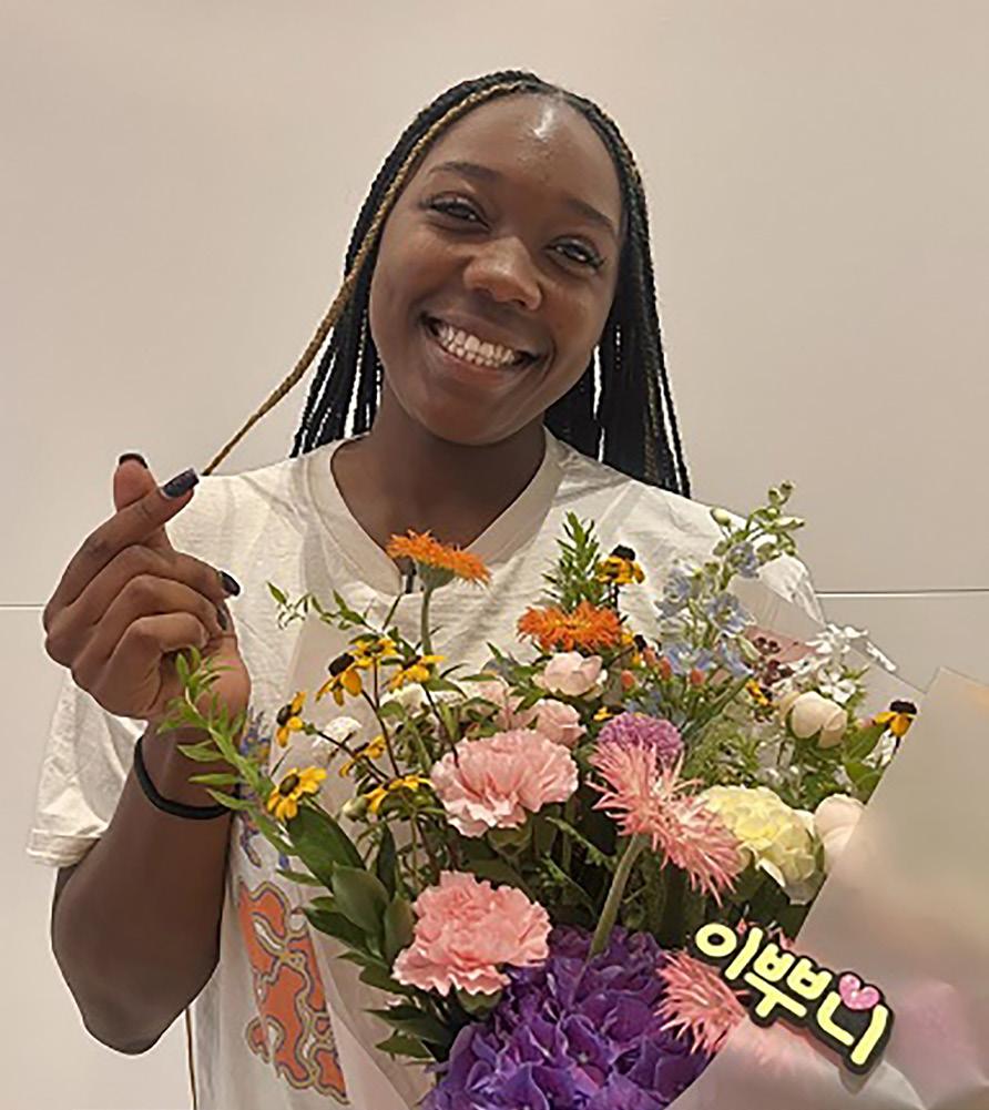 AI Peppers’ new recruit, Zoe Weatherington, arrives in Korea. (AI Peppers)