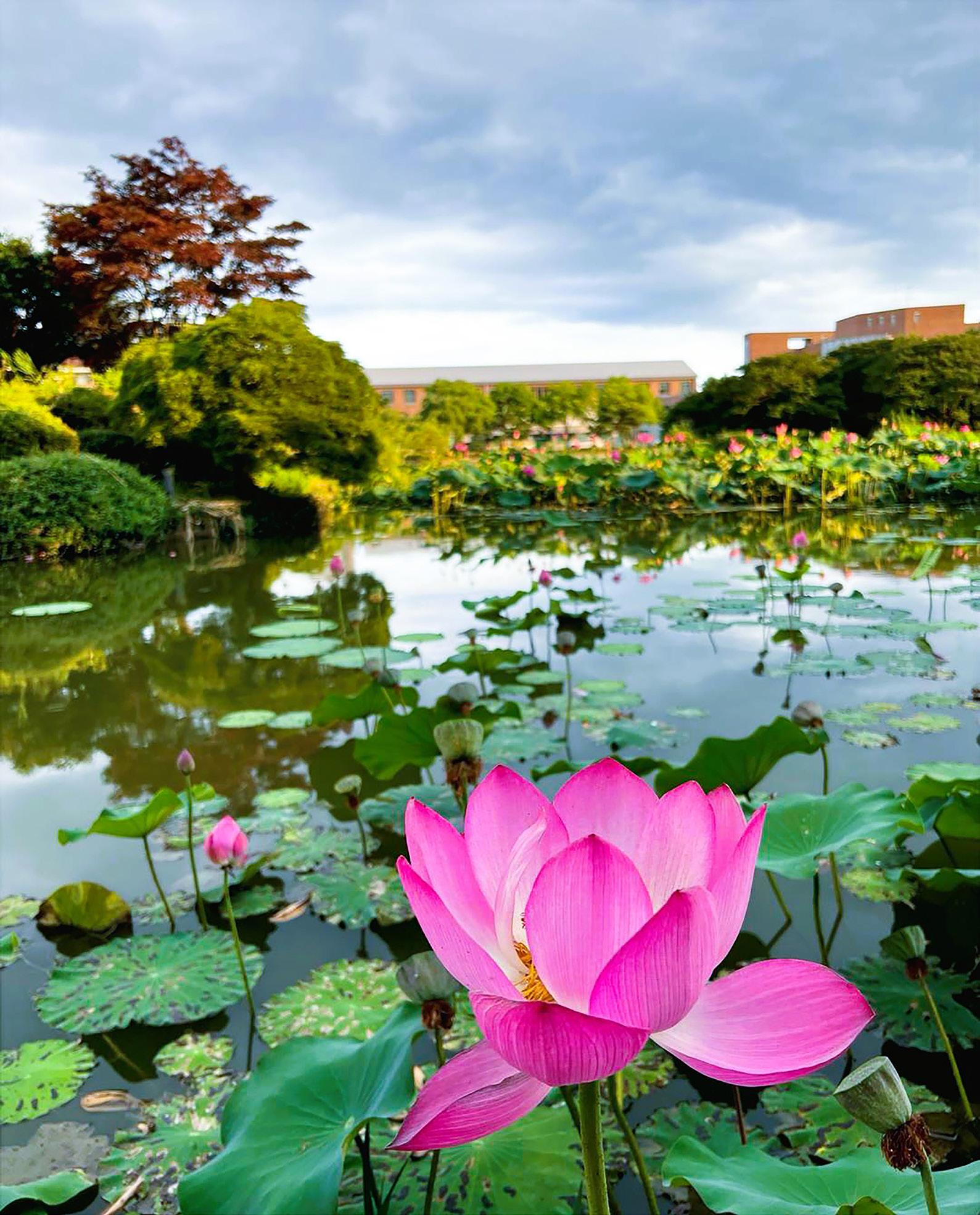 Photographed at Yongji Lake on the Gwangju Campus of Chonnam National University during the summer season.