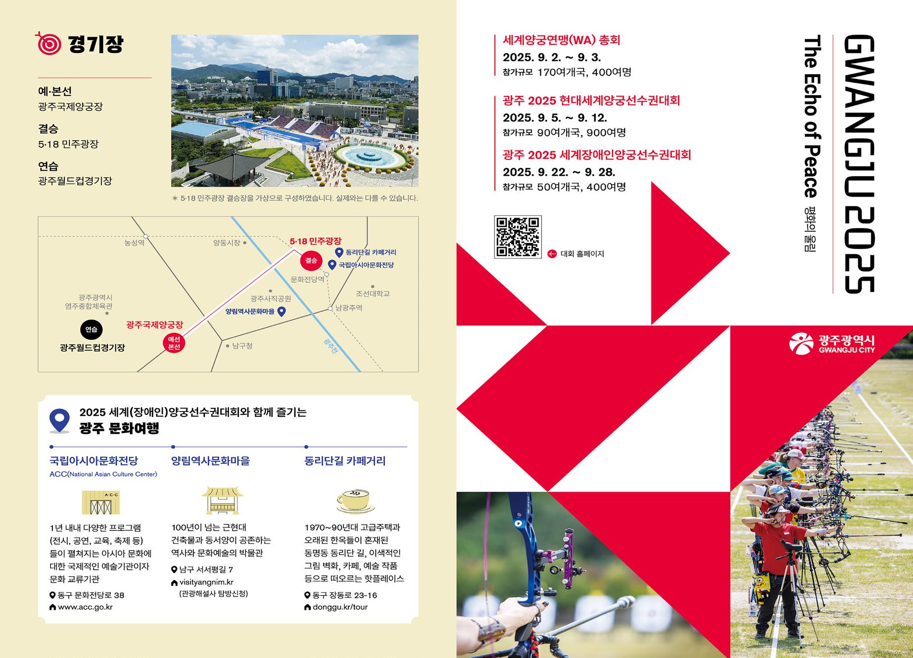Gwangju Metropolitan City will host the 2025 World Archery Championships this September. Archers from around the world will come together to compete and build friendship under the slogan “The Echo of Peace.” This marks the first time in 16 years that the World Archery Championships will be held in South Korea. In 2009 the archery championships were held in Ulsan.