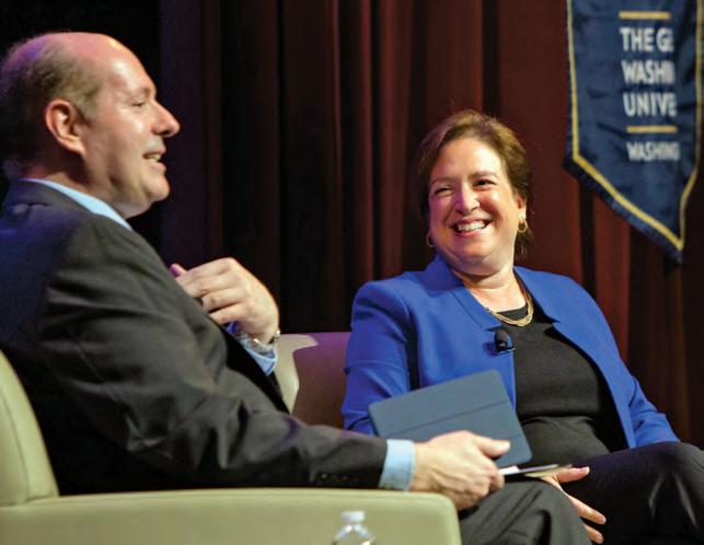 GW Law professors bring the legal world into the classroom. For instance, Professor Bradley Clark led a recent conversation with his friend Justice Elena Kagan (pictured left) before a room full of our students. Our professors argue before the Supreme Court, testify on Capitol Hill, and teach at GW Law. That’s an example of the D.C.-infused education that GW Law ofers. It means our professors are not only scholars, but that they engage in shaping the practice and evolution of the law in the institutions that surround our D.C. campus. That experience and access benefts our students.