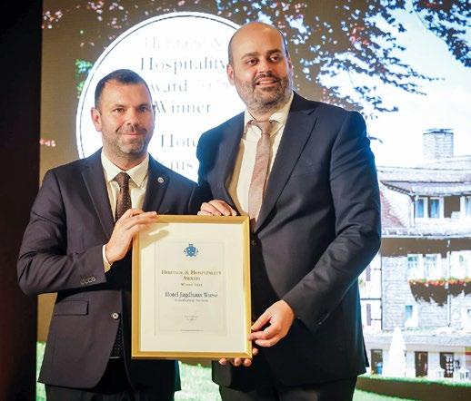Das Team ist der Star – neben dem Hotel und seinen Gästen. Im Fall des Landhaus Beckmann war es Empfangsmitarbeiterin Lea Garisch, die die Ausschreibung in unserer Fachzeitschrift entdeckte und Inhaber Michael Große Holtforth zur Teilnahme motivierte. Mit Erfolg. Das Vier-Sterne-Superior-Haus verfügt über 48 individuell gestaltete Zimmer von 14 bis 37 Quadratmeter. Nachhaltigkeit und Diversität sind hier ebenso gelebte Werte wie echte Gastfreundschaft und eine spürbar herzliche Willkommenskultur. Ein kleiner, hochwertiger Spa-Bereich, eine zeitgeistige und zugleich funktionale Ausstattung sowie ein direkt angeschlossener Gastronomiebe-