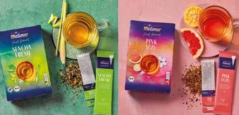 ein Bio-Grüntee, veredelt mit Zitrone und Lemongras. Die Verbindung aus mildem Sencha und Zitrusnote soll diese Sorte zu einem Must Have für Genießer machen. Die Finest Moments-Sorten Pink Yuzu und Sencha Fresh werden in Faltschachteln mit je 15 einzeln aromaversiegelten Beuteln im recyclingfähigen Papierbeutel angeboten.