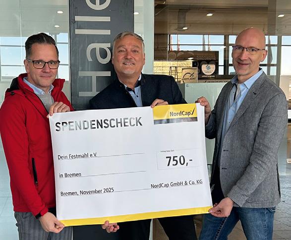 NordCap führte seine alljährliche Weihnachtsspendenaktion durch. Alle vier Niederlassungen des Unternehmens spendeten jeweils 750 Euro an eine wohltätige Einrichtung ihrer Wahl. Die Niederlassung in Bremen spendete ihre Summe an den Verein Dein Festmahl. Seit