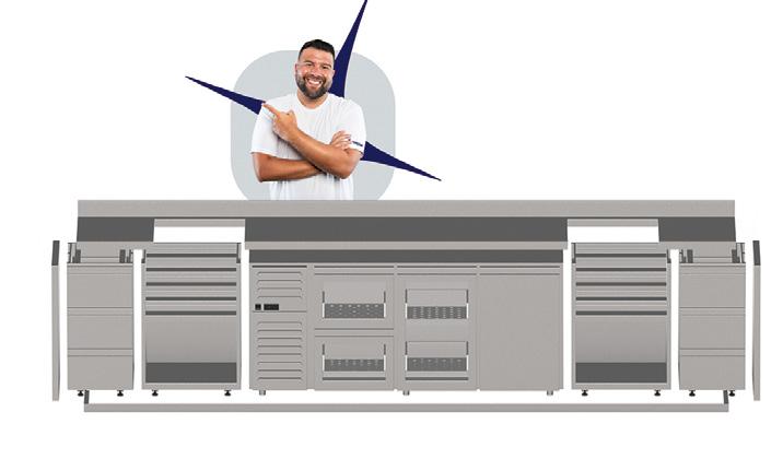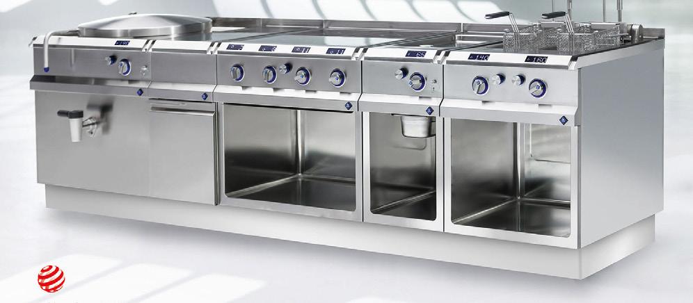 Die beiden neuen Kochsysteme überzeugen auch in der Konstruktion und Ausstattung: Mit unveränderten Abmaßen und mit sehr durchdachen Features für maximale Langlebigkeit und ergonomisches Handling. Elektrik und Wasser befinden sich jetzt voneinander getrennt in den beiden seitlichen Stützsäulen und wartungsfreundlich wurde eine praktische, ausziehbare ServiceSchublade in die rechte Säulenfront integriert.