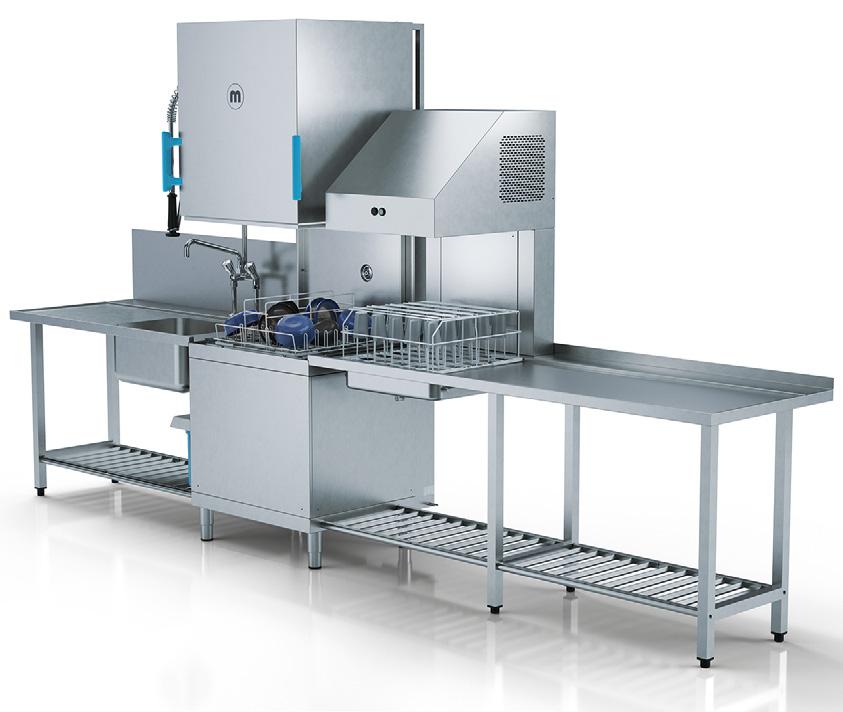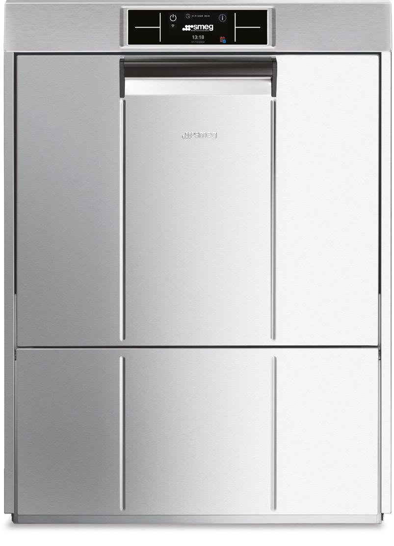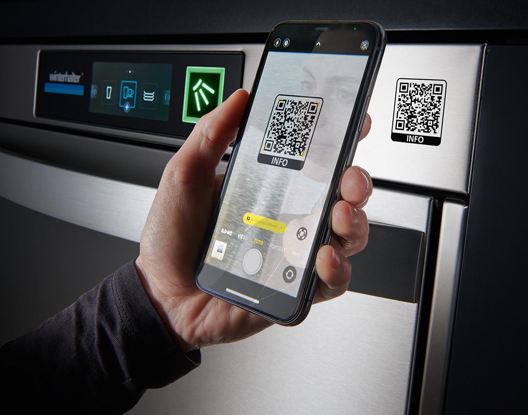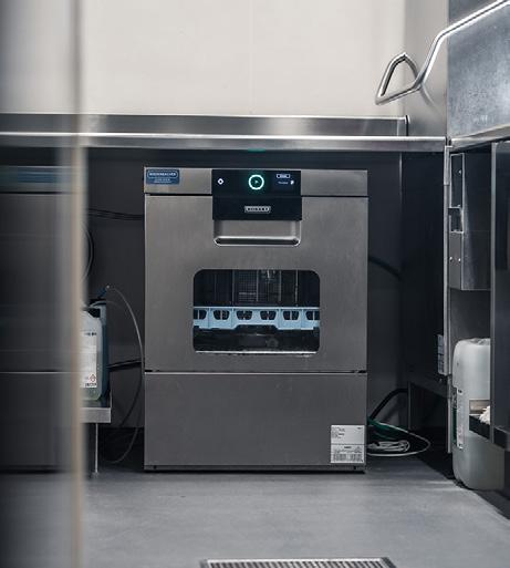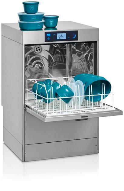 Wintermonaten besonders positiv auf Energie und Betriebskosten auswirken. Dazu gehören Wärmerückgewinnungssysteme wie EcoDrain und NRGSteam. EcoDrain fängt die Wärme des Abwassers auf und verwendet sie wieder. Dies führt zu einer signifikanten Reduzierung des Energieverbrauchs pro Zyklus – gemäß der EN 63136:2019. NRGSteam fängt nach dem Spülen den entstandenen Dampf auf und kondensiert ihn, sodass beim Öffnen der Haube kein Dampf in die Umgebung entweicht. Zusätzlich nutzt das System die zurückgewonnene Wärme zur Vorwärmung des Zulaufwassers, was den Energieverbrauch reduziert und eine Ablufthaube überflüssig macht. Das international patentierte UltraRinse3System senkt den Wasserverbrauch ohne Leistungseinbußen. Ergänzt wird dies durch