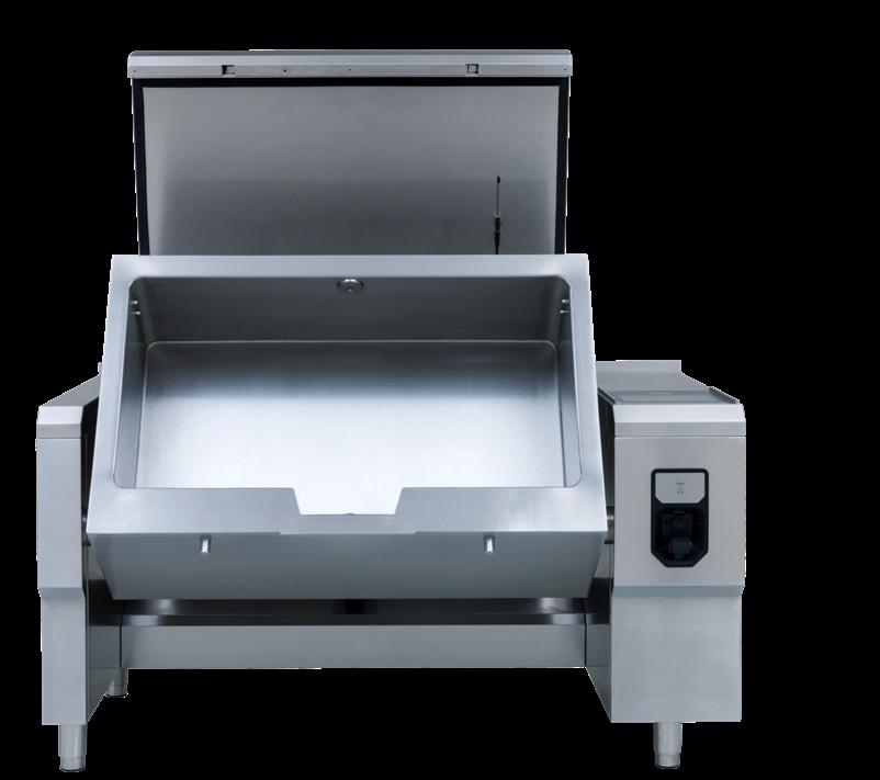 Aus der ProThermetic Range mit ihren mehr als 800 Elektro, Dampf und Gasgeräten stellte Wohlgemuth zunächst die Druckgarbraisière vor. Sie präsentiert sich im Marktvergleich mit einer bis zu 60 Prozent schnelleren Garzeit bei 0,45 bar Druck und einer Maximaltemperatur von 109 Grad Celsius im Tiegelinneren. Eine gleichmäßige, schnelle Anbratleistung ohne Anhaften des Garguts wird durch den Sandwich Aufbau des PowerblockHeizsystems mit in Aluminium eingegossenen Heizkörpern sichergestellt. „Die Einsparung der Energiekosten kann bei diesem Multifunktionsgerät bis zu 80 Prozent betragen, wenn es als Bratpfanne, Braisière, Kochkessel, Dampfgarer oder auch Druckgarer eingesetzt wird.“ Aber auch die breite KochkesselRange punktet mit hoher Leistung, kurzen Ankochzeiten und schnellen, energiesparenden Prozessen.
