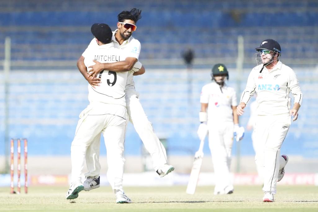 Scores: Pakistan 438 (Babar 161, Agha 103, Sarfaraz 86, Southee 3-69) and 311 for 8 dec (Imam 96, Shakeel 55*, Sodhi 6-86) drew with New Zealand 612 for 9 dec (Williamson 200*, Latham 113, Conway 92, Abrar 5-205) and 61 for 1 (Latham35*,Abrar1-23).