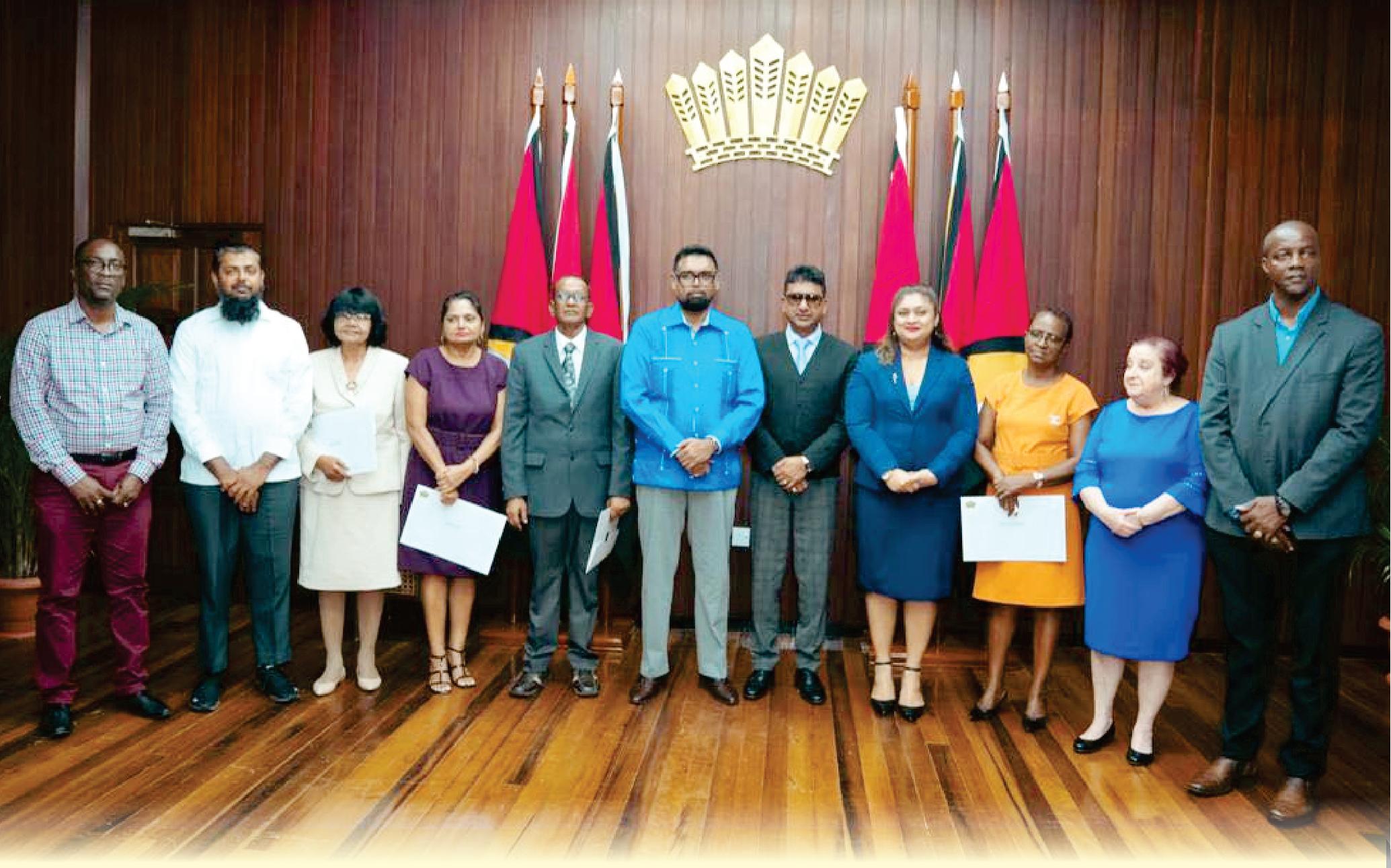 Attorney General and attheOfficeofthePresident Mrs Satti Jaisierisingh representativestobefaithful Minister of Legal Affairs, onShivChanderpaulDrive. TheywilltaketheirOathsof to their oaths and to execute Anil Nandlall, SC, the The members sworn in Officeatalaterdate. t h e i r d u t i e s w i t h Minister of Parliamentary were, Mr Maydha Persaud, The Teaching Service professionalism. Affairs and Governance, Mrs Doodmattie Singh; Commission is in charge of “Your actions will Gail Teixeira, and the Mrs Joan Ann David- appointing and disciplining contribute, in no small MinisterofEducation,Priya Monkhouse, Mrs. Shafiran Teachers. measures, to ensure that the Manickchand, also attended B h a j a n , a n d M r