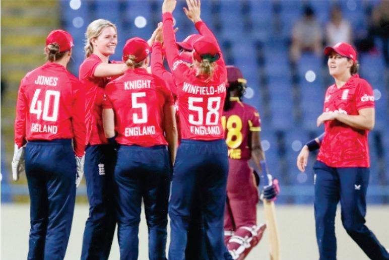 S o p h i a D u n k l e y continuedhergoodformthis year by top scoring with 35 while Katherine Brunt (24 not out) andAmy Jones (21) also had meaningful contributions against Cherry Ann Fraser’s career best 320 and Sheneta Grimmond’s 3-33.
