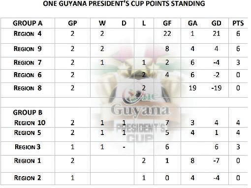 The home side is hunting scorer with seven goals. The three points to separate Golden Jaguars winger themselves from Region 10 registered six goals against and 5, who are currently on Region8. four points after picking up Nicolas McArthur netted critical wins over the four, Omari Glasgow and weekend. Ryan Hackett scored two, The day’s second game, while the other goals came at 6:00 pm, will see Region from Tyrese Dennis and 10 playing their penultimate CurtezKellman. match of the Group Stage Region 4 has now scored againstRegion1. 22 goals in the tournament, in a draw, the teams will With four points in the themostbyanytimesofar sharethespoils. bag from two matches, The top two teams in