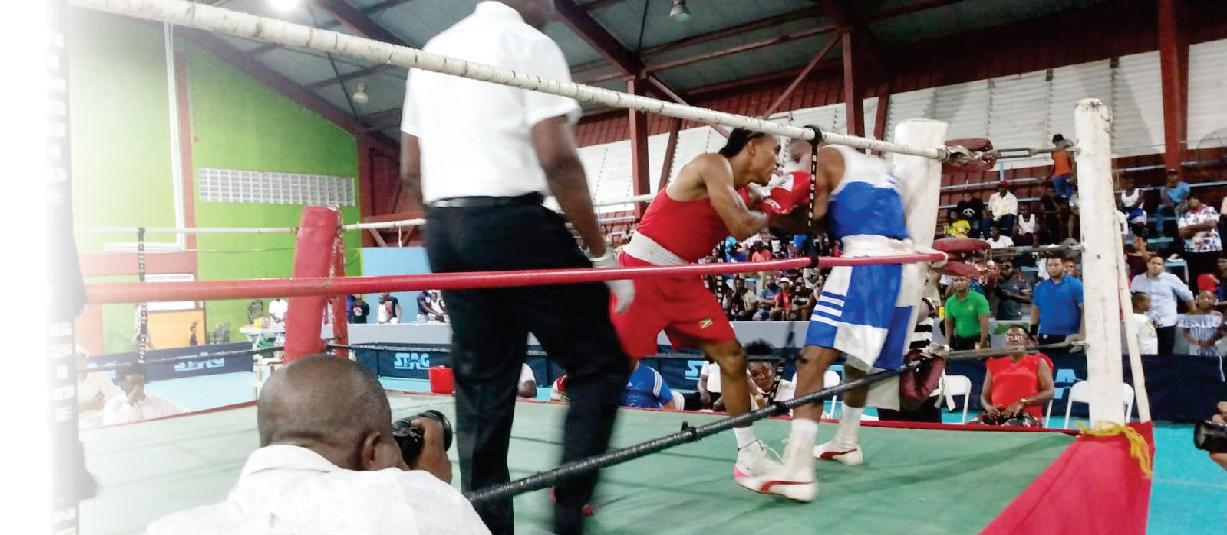 referee intervened, two Samuel ‘too slick’ got the best of Richard (POL) won the Lightbuildingcompetition. National Open Boxing minutes and forty-three Greene from Suriname met Howard (FYF) in the middleweight 67-71Kgs Sundaylast,had17bouts Championship brought an seconds into the 2nd round. with Keevin ‘Lightening’ Lightweight 57-60Kgs final final over Clifton Graham carded for the evening end to the year of all boxing Deron Williams (POL) won Allicock (FYF) in the claiming the Gold by way of alsooutPoliceBoxingGym. starting with three competition. the Flyweight 48-51Kgs Featherweight 54-57Kgs the judge’s decision. In the Sancho won the fight by schoolboy’s matches, As promised by the final, as Kevin Isaacs, his finals. Allicock delivered a Junior-welterweight 60- unanimous decision. And in whereby we saw Gladston President of the Guyana opponent, who had goodbeatingtohisopponent 63Kgs final, Jamal Eastman the Middleweight 71-75Kgs Winter and Shaquon