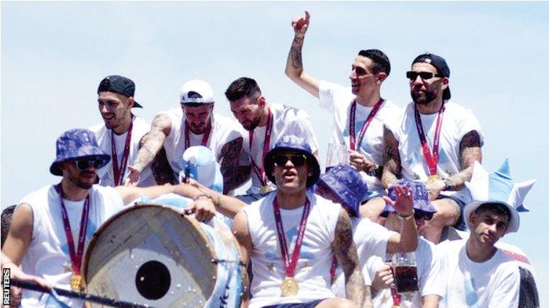 Paris St-Germain forward Messi, who captainedthe side and cemented his place for many as the greatest footballer ever by lifting theWorld Cup, sat in the middle of a group of thesquadonthetopdeck.