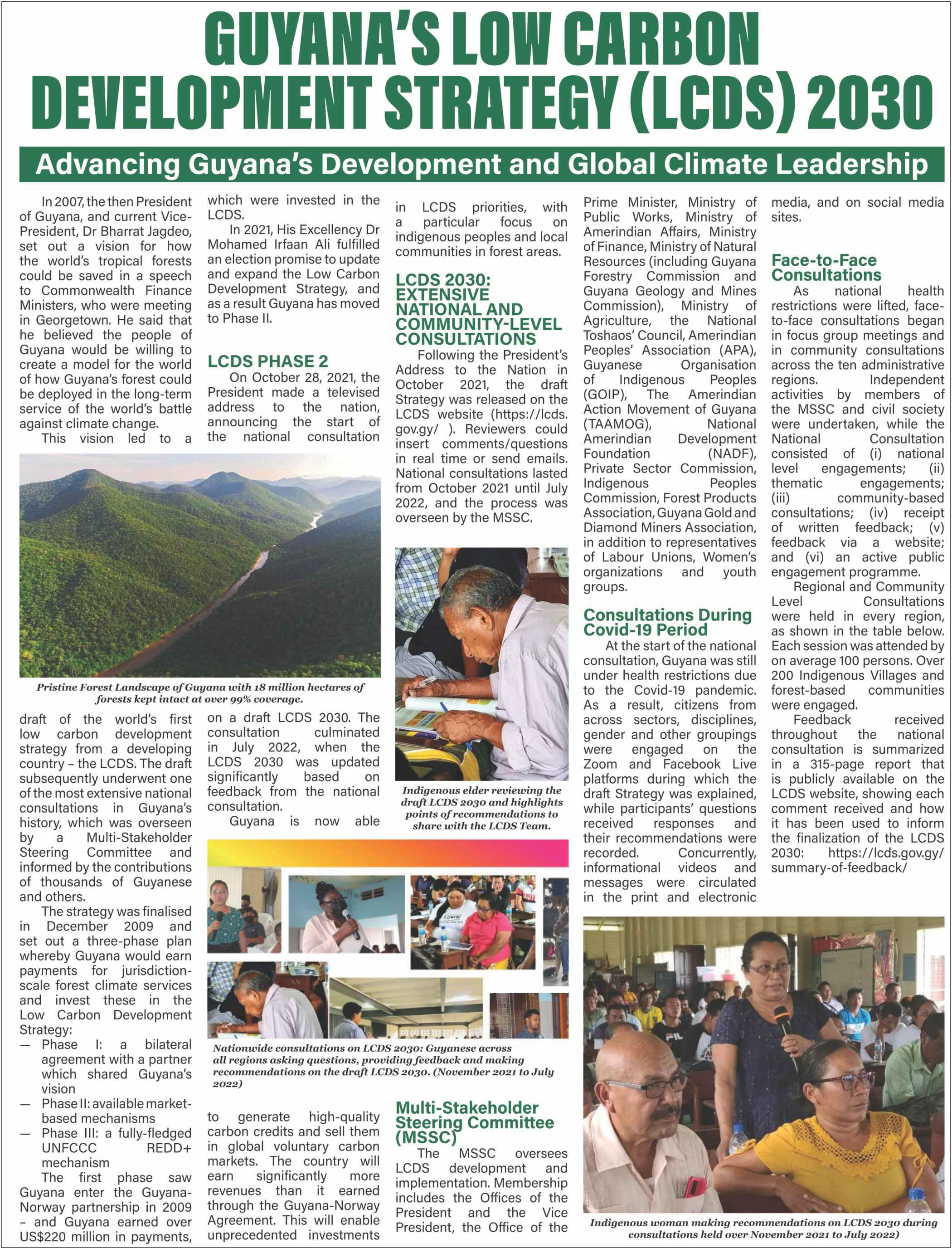 (7) Consultations:More by anti-development voices society and join with our t h a n h a l f o f t h e to forward a narrative that President and our the indigenous are being Government to ensure that ostracized here in Guyana. we as a people enjoy the Theseopinionsareprimarily bounties of the future as a fromthesamevoicesthatare strongunitedpeople. keen on