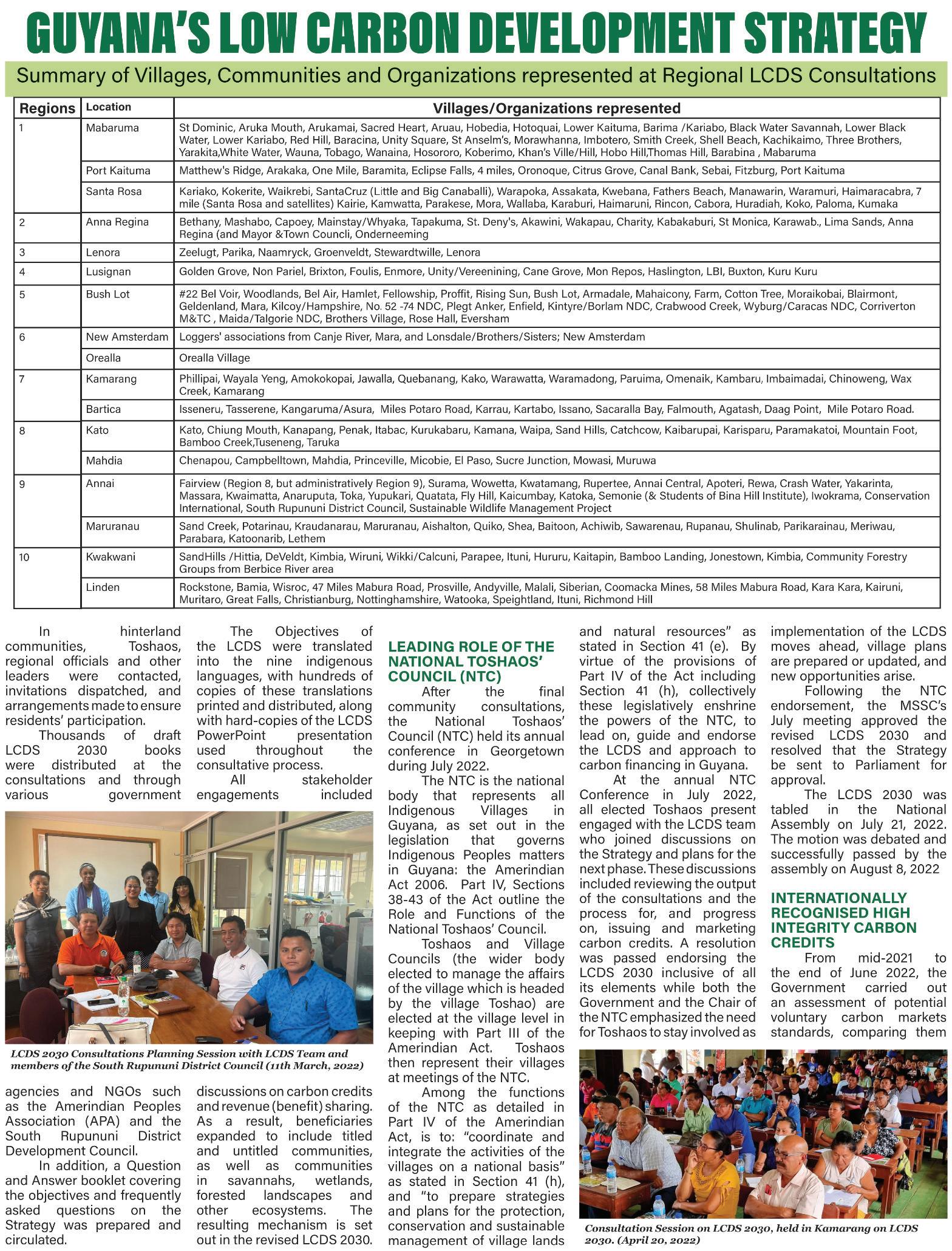 (5) MiningandForestry: partofthehemisphere. must resist the efforts of Amerindians will have a The Amerindians of these anti-Nationalists and legal right to traditional Guyana are given equal their divisive messages. It mining with the consent of status within the landscape must be noted that the theVillageCouncilandthey of Guyanese citizenhood by Government proved its must comply with the every PPP/C Government, mettle via its early struggles relevantlegislation. while yet being encouraged to get into office following With regard to forestry, to sustain their cultural and the 2020 regional and theVillage Council plays an traditional norms; which far General Elections. Their integral role in determining surpasses the treatment fight to protect Guyana’s who is allowed to use their meted out to indigenous Democracyandpreservethe landandonwhatterms. peoples of even first-world willoftheelectoratewasnot
